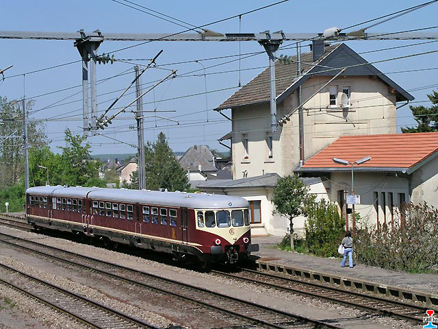 Der Museumstriebwagen Westwaggon Z208 zwecks Ausbildungen, im Plandiensteinsatz auf der Strecke Noertzange - Rumelange, hier in Tétange (Photo: 7.5.2008 jmo)
