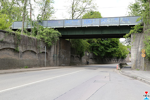 Brücke über die Saargemünderstraße des Anschlußgleises vom Güterbahnhof zum Werk Neue Halberg-guss