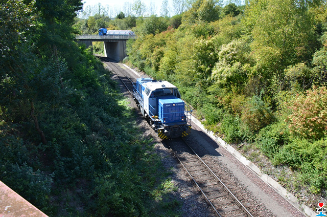 D'CFL cargo 1011 dreckt dei 25 Ween zreck an d'140 m Radius enk Kéier (Photo: 30.8.2019 Tom Lambert)