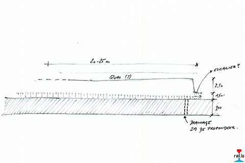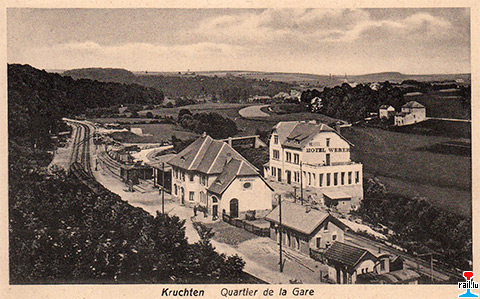 Kruchten - Quartier de la Gare: uewen lënks d'Jangelisbrëck - riets ënnen tëschend der Gare an dem Hôtel d'Gleis vum Jangeli