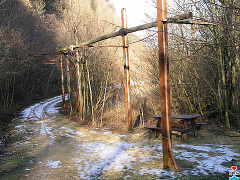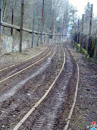 links die Grubenbahnstrecke Rollesberg - Thillenberg, rechts Stolleneingang "Grouwen" (Photo