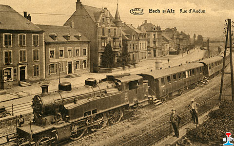 Esch s/Alzette - Rue d'Audun, avec locomotive PH série L (254) (Carte