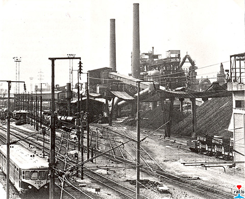 Nouvel arrêt de Differdange avec au fond ARBED-Differdange