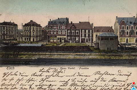 Esch Alzette, Grenze - Neues Viertel - Frontière - Stellwerk - um 1906 (Carte