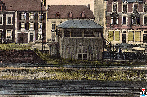 Hangar détruit en 1906: Eine alte Bude, in welcher vor Zeiten die Weichen und Signale gezogen wurden. Diese Bude war unter dem Namen Hochgericht bekannt. (Arme Teufel: 16.09.1906)