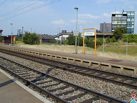 Gare Belval-Usines avec au fond Arbed-Belval