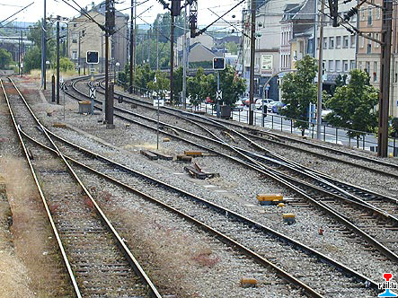 Gare / Bahnhof Esch/Alzette: à gauche la voie vers Audun-le-Tiche/France, à droite les voies vers Pétange