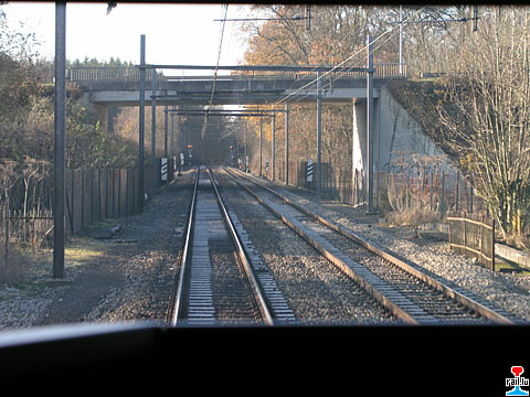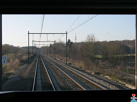 Strecke zwischen Capellen und Kleinbettingen vom Führerstand der Dieseltriebwagens