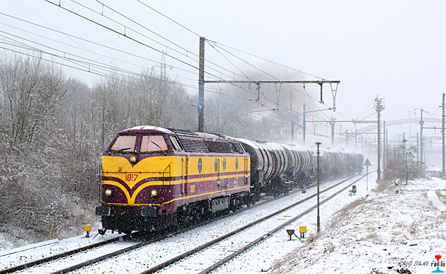 CFL cargo 1817 avec train de citernes à Hollerich. Pour ne pas perturber le traffic voyageur, elle circule à contre-voie. (Photo: 30.1.2012 Yves Gillander)