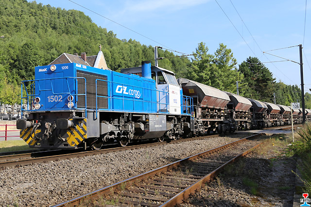 Locomotive CFL cargo 1502 avec une rame de klinker vide en route vers Intermoselle à