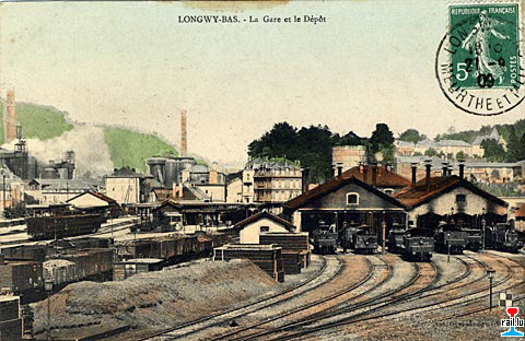Longwy - Gare et Dépôt vers 1909, à gauche au fond l'Usine
