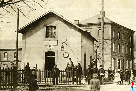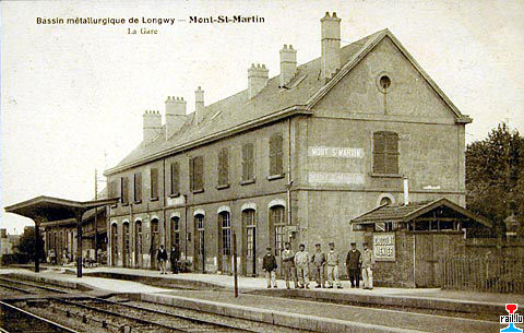 Gare Mont-St-Martin vers 1906. La gare a été construite en 1860