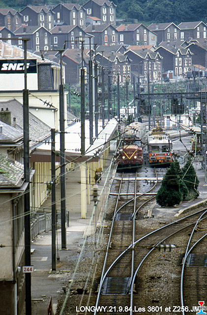 Wegmann et automotrice CFL Z256 en gare de Longwy (Photo: 21.9.1984 Jean-Marie Vaillant)