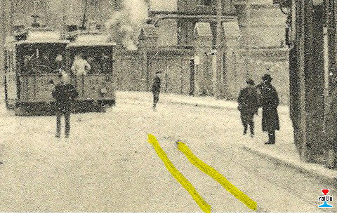 Voie 600 mm va à gauche dans la rue de la Garde