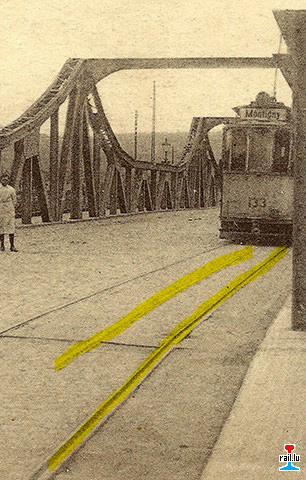 Metz - Moyen-Pont (Mittelbrücke, stadtauswärts) - voie à deux écartements - voie à 3 rails - 3 Schienengleis: Tramways 1435 mm + 600 mm (AK Sammlung Richard Lutz)