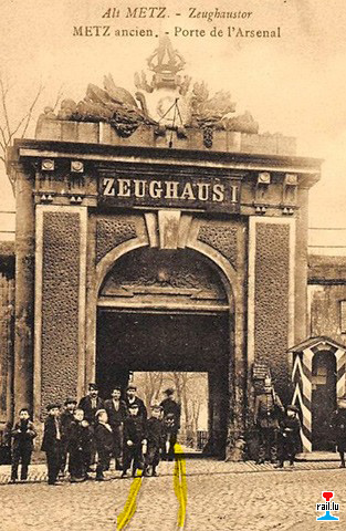 1. La voie ferrée militaire (600 mm) à Metz partait de la gare Devant-les-Ponts, passait par le Pont des Morts et le Moyen-Pont, bifurquait à droite dans la rue de la Garde, puis immédiatement à gauche vers le commandement régional et le Palais de justice.