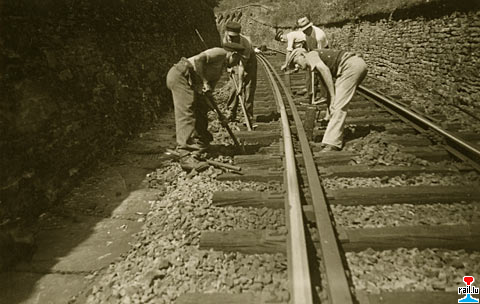 Rottenarbeiter vor dem Wilwerdinger Tunnel