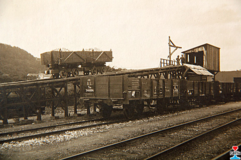 2 Loren auf der Laderampe der Gipswerke Lutz Frères, Reisdorf am Bahnhof Reisdorf, im Vordergrund der AL - Güterwagen Tou 348.004 (Collection: