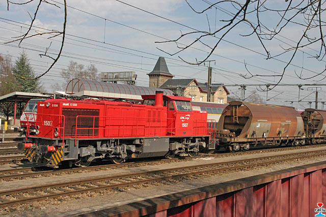 CFL - Diesel Loks 1807 und 1815 mit Sandzug bei Luxguard in Bascharage (Fotos: 24.5.2007 jmo)