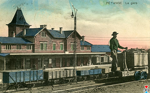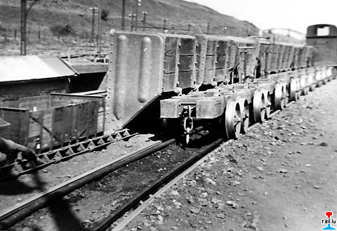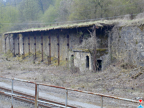 Les minerais étaient amenés   au quai face à la gare de Rumelange par l'ancien pont franchissant la   route de Tétange près de l'actuel rond-point et versée dans les wagons   du CFL