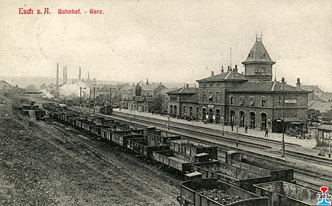 Esch-Alzette: La gare avec le quai Collart - Der Bahnhof 1869 (Source: Joseph