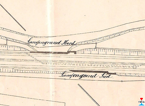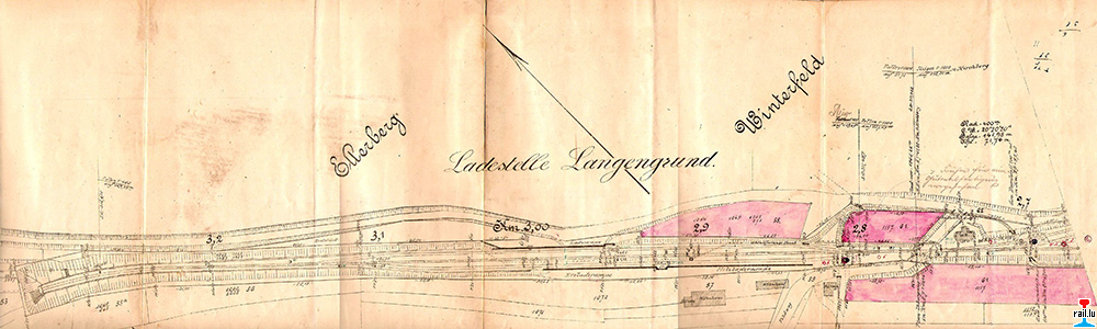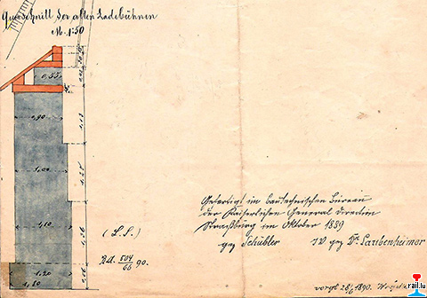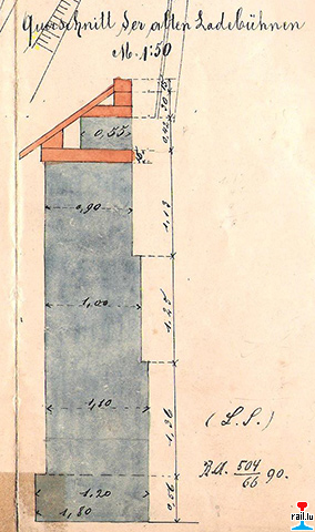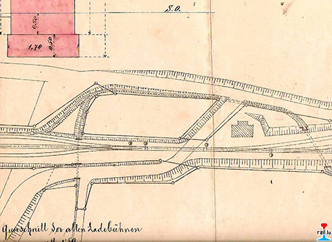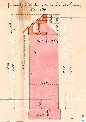 Langengrund: Querschnitt der alten Ladebühnen - neuen Ladebühnen  (Zeichnungen: 26.8.1891 Eisenbahn Betriebs Direction, Luxemburg; Collection: Marcel Schlim)