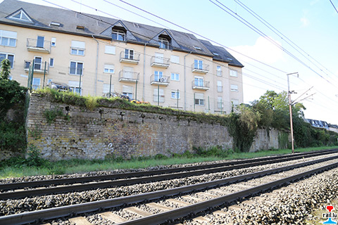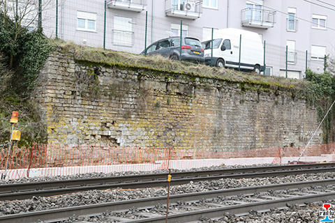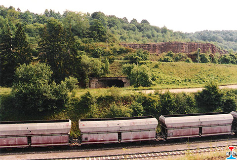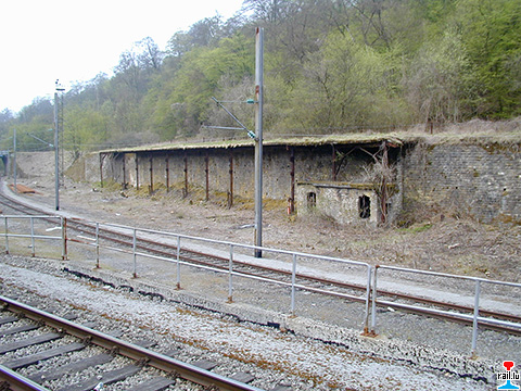De leschten Quai lenks op der Streck Hussigny - Audun virum Tunnel, vun Hussigny op den Tunnel gekuckt, vis-à-vis vun der Gare Adlergrund (Redange/Moselle). (Photo collection: jmo)