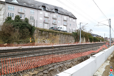 Poteauën trennen d'Quai-Gleis an d'Haaptgleis. Am Haaptgleis lait eng Weich.