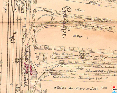 - direkt gegenüber dem Bahnhof Rümelingen - Plan von 1899  (Collection: Marcel Schlim)