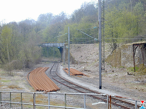 Ancien quai Hondsbesch - Niederkorn, en bas la ligne Esch - Pétange (Photo: 25.4.2002 jmo)