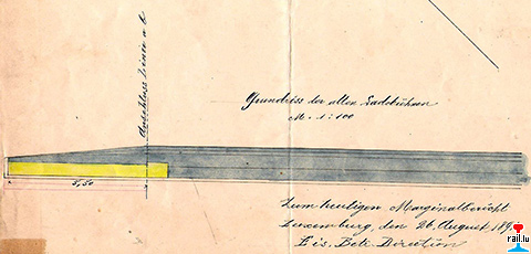 Plang mam Ëmbau-Projekt (Zeichnungen: 26.8.1891 Eisenbahn Betriebs Direction, Luxemburg; Collection: Marcel Schlim)