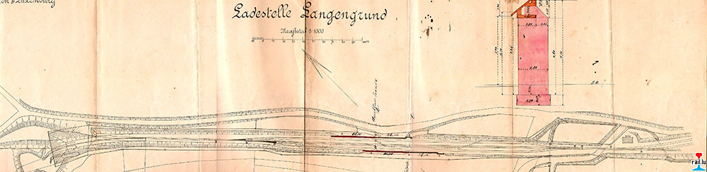 Langengrund: Querschnitt der alten Ladebühnen  (Zeichnung: 10.1889 Schübler, Dr. Laubenheimer; Bautechnisches Büro ... General Direction, Straßburg)