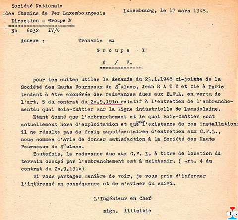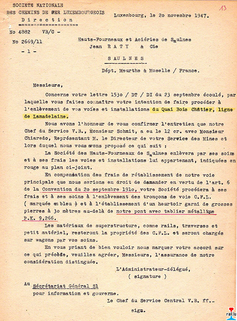 évacuée par la galerie Kraemer et dirigée sur une installation de   transbordement, établie près de l'usine de Dudelange