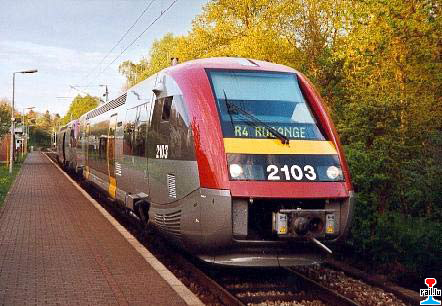 Les autorails diesel CFL 2103 et 2101 partent pour Wasserbillig (Photo: 8.3.2001