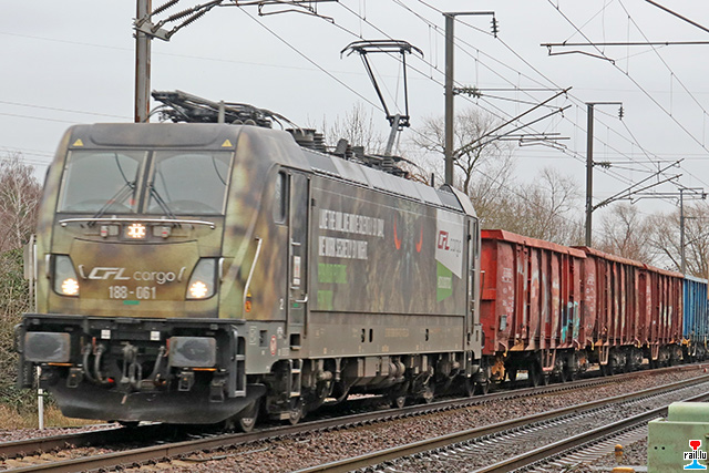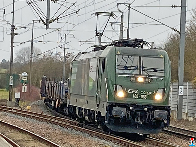 E puer vun den 188er (mat neier Software) ginn op den Emleeder agesat an kommen soumat fir d'éischt op aneren Strecken wei der Relatioun Beetebuerg - Syren - Igel an den Asaz. Hei kennt d'188-069 mam vollen Ehranger Schrott duerch Contern a Richtung Rodange gefuer. (Foto 11.08.2025 - Collection T. Lambert)