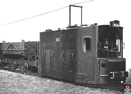 - Seitenansicht der UEG - Grubenlok Fnr.14 (UEG No 14) (Quelle: Brüsch: Leitfaden der Elektrizität im Bergbau; Scan Wolfgang-D. Richter)
