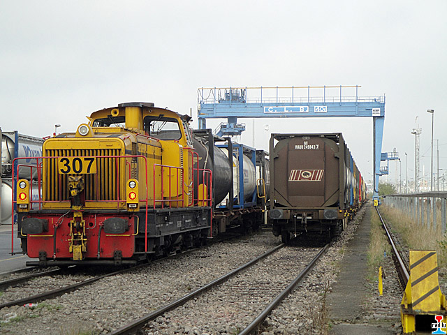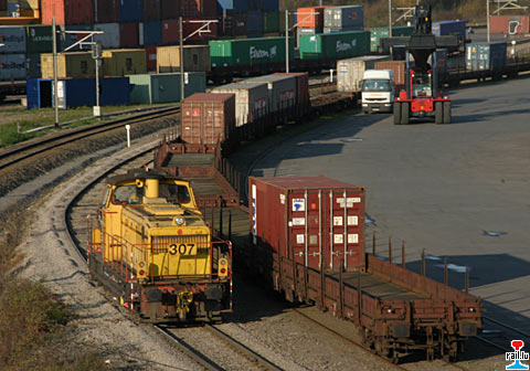 D'CFL Cargo 307 am Container Terminal an huet virun 20 Joer sëcher ni dru geduecht, emol eng Kéier mat Containerzich um CFL-Réseau ze rangéieren. (Photo: 25.10.2012 René Birgen)