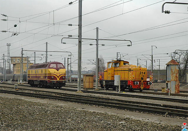 CFL CARGO 314 et CFL 1818 au triage de Bettembourg (Photo: 22.1.2007 Mike Wohl)