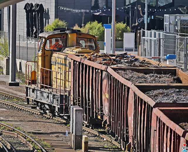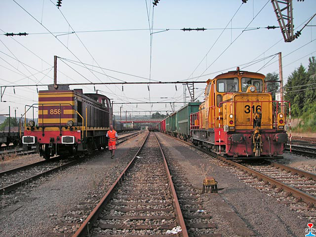 Wegen einem technischen Problem an den Radioaktivitätsdetektoren in Belval, wurde am 14.7. ein mit Schrott beladener Güterzug in Differdingen über das frühere Anschlussgleis ins Werk Differdingen gebracht. Da man in Differdingen aber über keine Funkgeräte mehr verfügt die den Kontakt mit denen der CFL erlauben, war die Begleitung eines CFL-Mitarbeiters erforderlich. Auf den Bildern erkennt man im Bahnhof Differdingen die CFL-Lok 858, die den CFL-Mitarbeiter von Petingen herbrachte und die 316 am Güterzug; die 316 auf dem Viadukt auf dem Wege zum Bahnhof Brill; sowie die Werkslok 317. (Photos: 14.7.2006 Dan Antony)