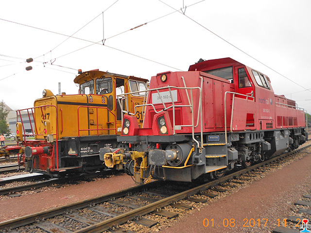 D'CFL-cargo 317 an an d'Test - Voith Gravita 10BB 260 502-0 um "réseau tertiaire" bei Arcelor-Mittal (Photos: 1.8.2017 Michel Brachmond)