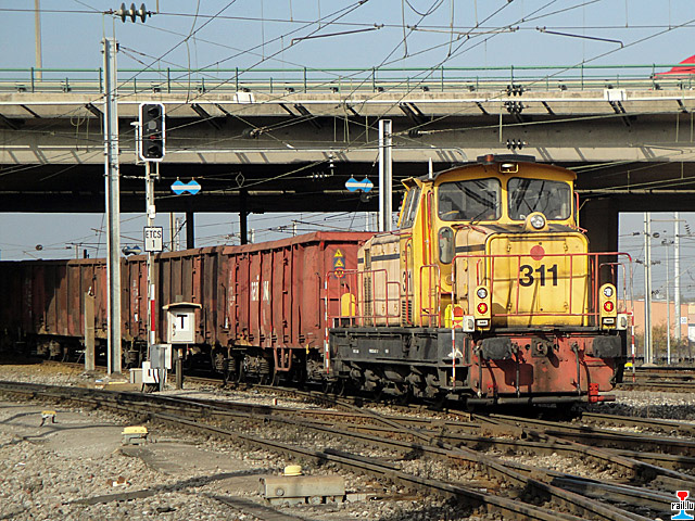 La 308 au triage de Bettembourg à ce moment elle était à l'arrêt (Photo: 21.2.2012 Seb Steiner)