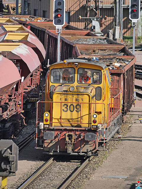 CFL Cargo 309 vor einem Schrott-Zug auf Belval (Photos: 17.4.2018 Francis Wagner)