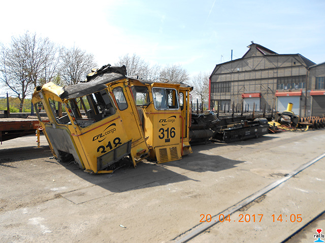 | 316 | 800189 | 1973 | 82,5 | 38 | L 5R4 U2 | alourdie de 10,5 t pour les besoins de Arbed-Differdange moteur MTU ferraillée 4.2017 |