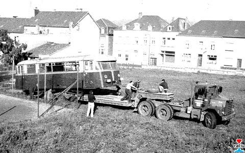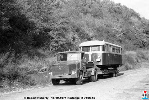 Arrivée  de l’autorail ex-CFL Z 151 avec le camion AEC de Schiltz-Feinen (Photo: 18.10.1971 Robert Huberty)