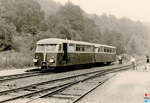 Uedinger - Schienenbus CFL 151 und Beiwagen RZ 1051 im Fond-de-Gras (Photos: 1974-75  François Urbany)