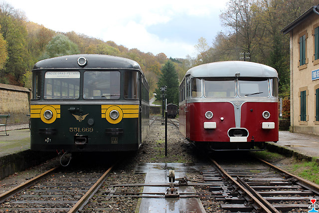 Autorail Uerdingen ex-CFL 151 de l'AMTF  et autorail Uerdingen (ex SNCB 551.669; ex DB 795-669) au Fond-de-Gras (Photo: 3.11.2013 Dan Antony)