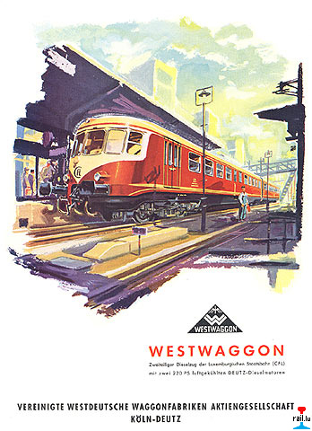 Zweiteiliger Dieselhydraulischer Triebwagen mittlerer Leistung der Vereinigten Westdeutschen Waggonfabriken A.G. für die Luxemburgische Staatsbahn | Juni 1958 | Glasers Annalen | CFL Serie 200 | 205-210 | ||