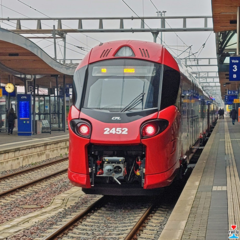 Neuer CFL - Elektrotriebwagen 2452 im Bahnhof von Luxemburg, fährt nach Athus. Photo: 19.01.2026 Hans de Rond)