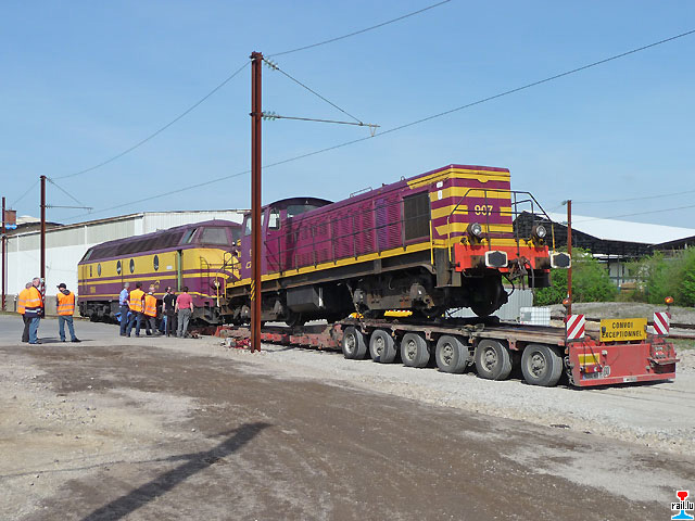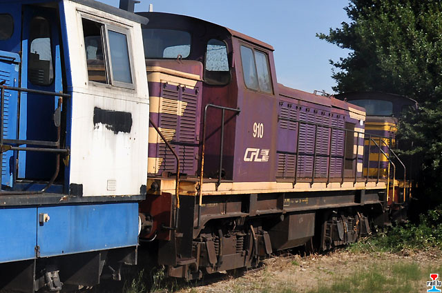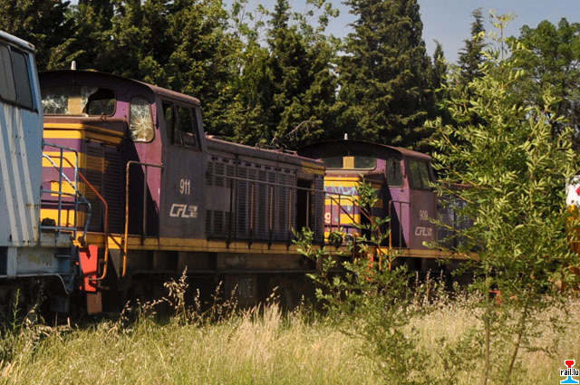 Ex CFL 910 et 853 au dépot RDT13 d'Arles. La 904 était dans le dépot d'Arles en train d'être révisée et équipée pour rouler sur le réseau RFF - RDT13 a maintenant sa licence et certificat de sécurité. (Photo: 26.5.2011 David Haydock)