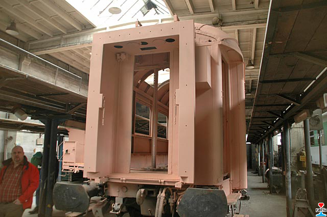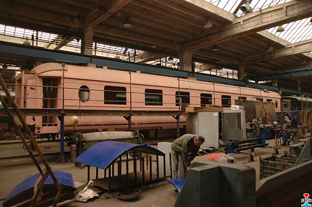 CIER Pullman No 4013 actuellement (juin 2008) en révision à ZOS Ceske Velenice (CZ), transformation et remise en état d'origine WSPc Voiture Salon Pullman Flêche d'Or, avec cuisine. Mise en service fin 2009